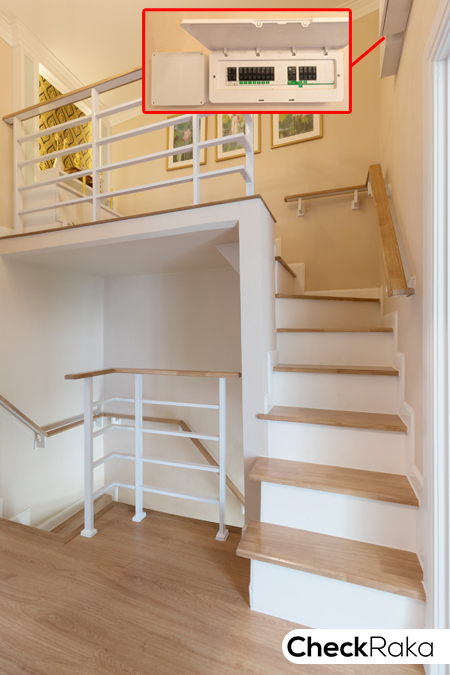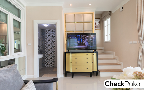 มาดูจุดแรก ข้างๆ บันได้ทางขึ้น สามารถ Built-in ชั้นวางของ หรือ ตู้วางทีวีแบบนี้ก็ได้