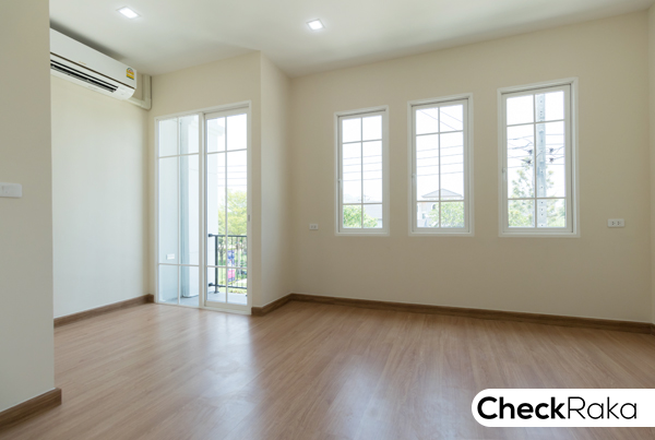หากมาดูบ้านเปล่า จะเห็นหน้าต่างบานกระทุ้งทั้งสามบานได้ชัดเจนขึ้น พร้อมประตูบานเลื่อนขนาดใหญ่