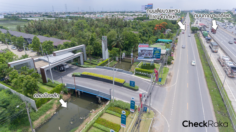 ถนนด้านหน้าโครงการคือ ถนนเลียบวงแหวนกาญจนาภิเษก โดยทางเข้าโครงการ