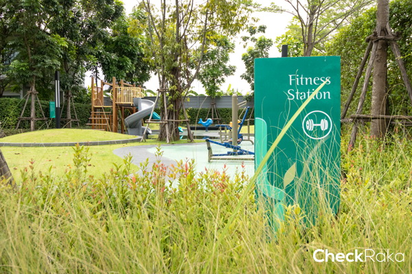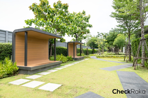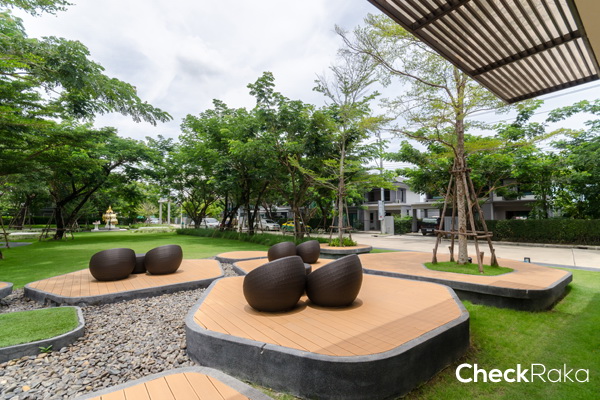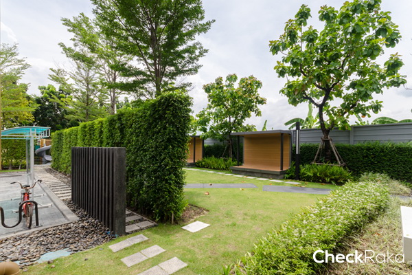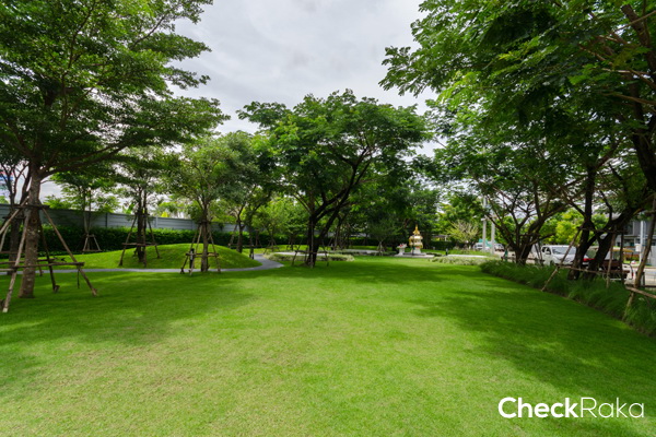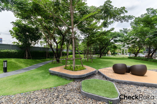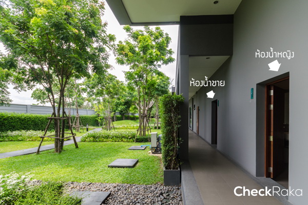 ตรงเข้าไปประมาณ 150 เมตร จะเห็นสวนและคลับเฮ้าส์ขนาด 2 ชั้น ตั้งอยู่ฝั่งขวามือ
