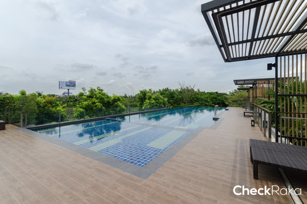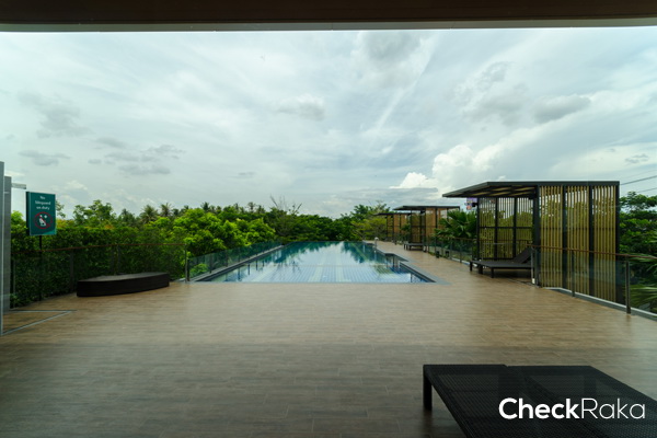 สระว่ายน้ำกลางแจ้ง ระบบเกลือขนาดใหญ่ ต้องใช้ Key Card สำหรับเปิดประตูเข้ามาเล่น