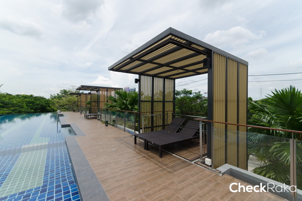 มีเก้าอี้นั่งข้างสระ ได้อารมณ์เหมือนไปพักผ่อนตามรีสอร์ท