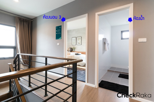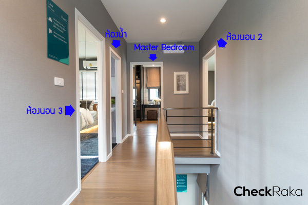 ชั้นบนมีทั้งหมด 3 ห้องนอน และ 2 ห้องน้ำ โดย Master Bedroom จะมีห้องน้ำในตัวด้วย