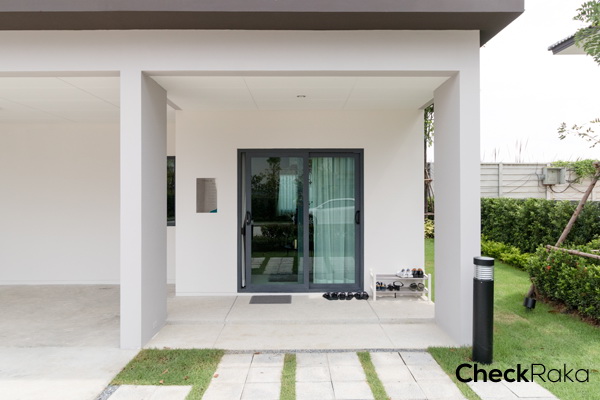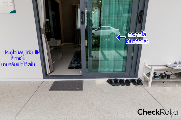 ประตูทางเข้าบ้านอยู่ด้านข้าง เป็นประตูบานเลื่อน