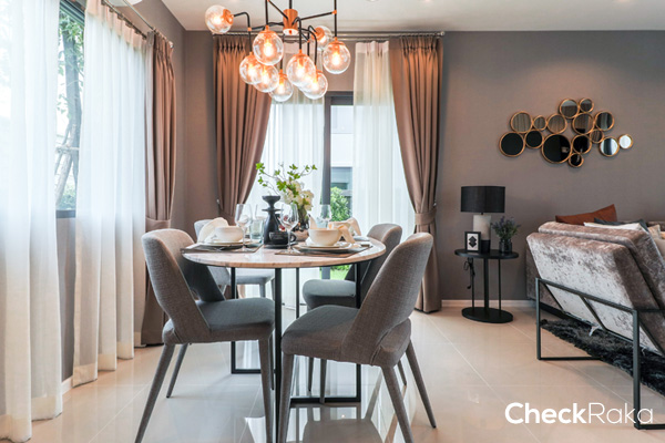 ส่วนโซนพื้นที่รับประทานอาหาร มีประตูทางออกไปด้านข้างของบ้าน