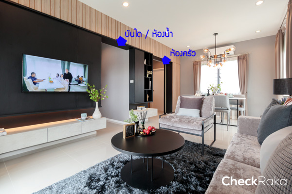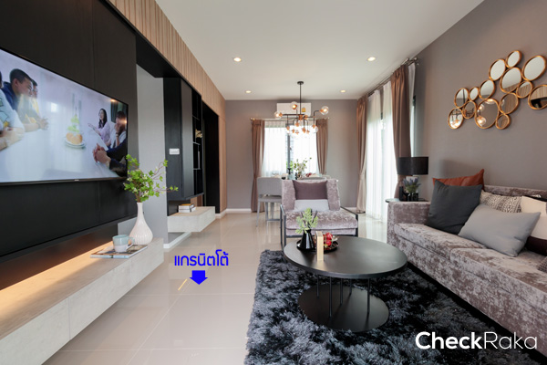 เข้ามาจะเจอกับห้องนั่งเล่น พื้นบ้านเป็นพื้นกระเบื้องแกรนิตโต้