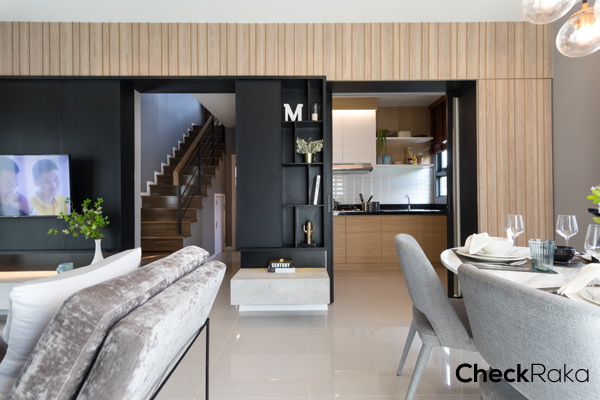 เรามาดูอีกด้านหนึ่งกันค่ะ ส่วนห้องครัวนั้นจะไม่มีประตูปิด แต่มีช่องกั้นโซนให้