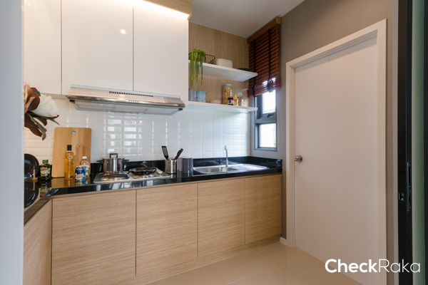 กลับมาในห้องครัวอีกครั้ง มีพื้นที่สำหรับวางตู้เย็นให้อย่างเป็นสัดส่วน