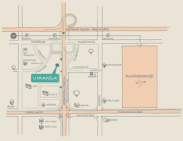 - ขาออกโครงการ เส้นทางที่ 2 ออกทางถนนบางนา-ตราด