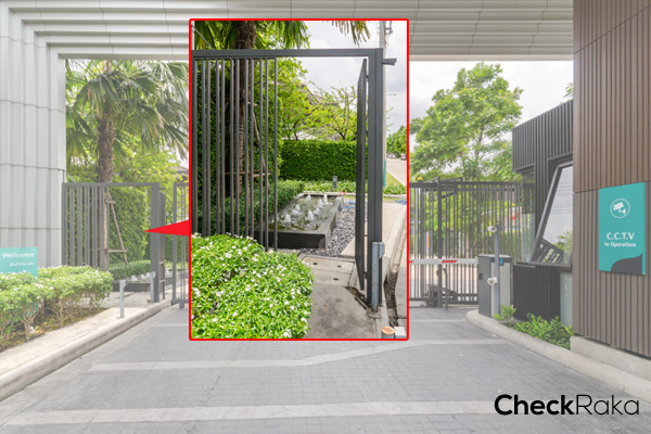 ที่ซุ้มประตูมีที่สแกนคีย์การ์ดเข้า-ออกโครงการ ไม้กั้นกระดก ประตูบานเลื่อนอัตโนมัติ CCTV และ รปภ. ตลอด 24 ชม.