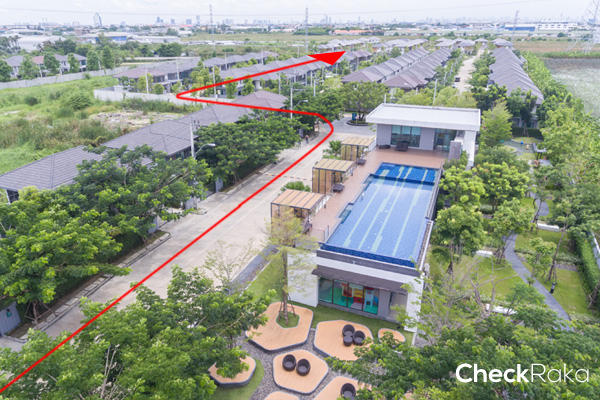 เลยจากคลับเฮ้าส์ จะเป็นวงเวียนไปสำนักงานขาย เลี้ยวซ้ายตามลูกศรสีแดงไปเลยค่ะ