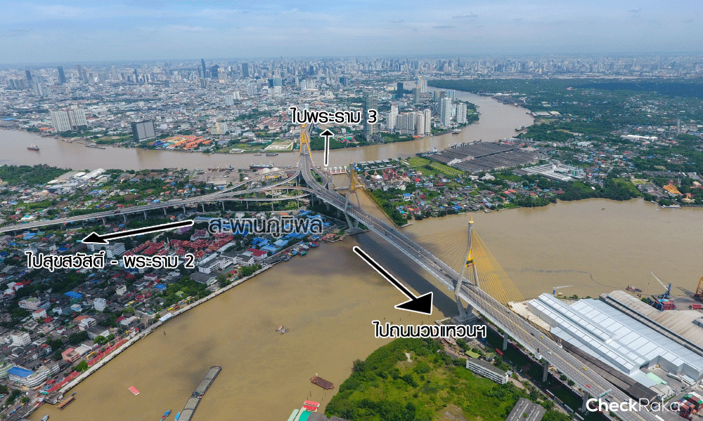 ถนนวงแหวนอุตสาหกรรม บริเวณสะพานภูมิพล สามารถเดินทางต่อไปได้อีกหลายเส้นทาง