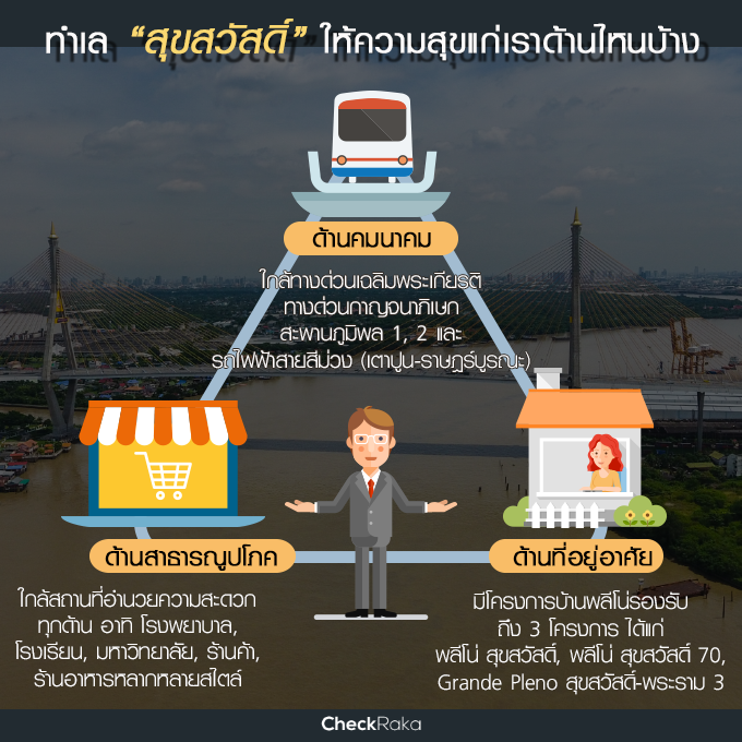 เราอาจจะเคยได้ยินทำเล "สุขสวัสดิ์" กันมาบ้างแล้ว ซึ่งก็มีโครงการที่อยู่อาศัยหลากหลายบริษัท เล็งเห็นถึงศักยภาพของทำเลนี้แล้วเข้ามาลงทุนกันค่อนข้างเยอะ 1 ในนั้นก็มี AP ที่เปิดบ้านแบรนด์ "พลีโน่" บนทำเลนี้ถึง 3 โครงการที่น่าสนใจ อย่างไรก็ตาม ยังมีอีกหลายสิ่งที่เราต้องเข้าไปสัมผัสสถานที่นี้จริงๆ เพื่อพิสูจน์ว่า "สุขสวัสดิ์" คือทำเลที่เหมาะสมกับการหาบ้าน เป็นทำเลที่จะสามารถตอบโจทย์การอยู่อาศัย และทำให้เรามีความสุขได้จริงๆ วันนี้เราจะพาท่องโลกกว้างไปสู่ทำเล "สุขสวัสดิ์" เพื่อค้นหาว่าทำเลนี้น่าอยู่อย่างไร และมีอะไรที่ตอบโจทย์ความสุขของเราได้บ้าง