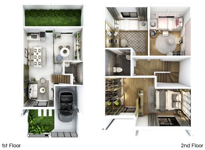- ปัจจุบันเปิดขายแบบบ้านทั้งหมด 2 แบบ ทาวน์โฮม 2 ชั้น หน้ากว้าง 5.5 เมตร และ บ้านแฝด 2 ชั้น หน้ากว้าง 6.5 เมตร