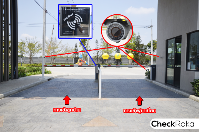 ไม่ต้องเสียเวลารอคนภายนอกที่กำลังแลกบัตร พอสแกนบัตรแล้วไม้กั้นก็จะเปิดอัตโนมัติ ที่ซุ้มประตูทางเข้าโครงการมีการ์ดสแกน CCTV และมีห้องสำหรับ รปภ. กั้นตรงกลางระหว่างทางเข้าและทางออก