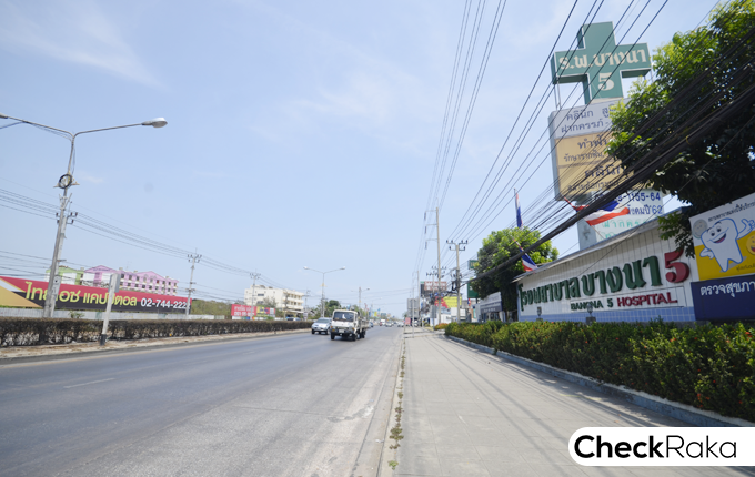 หน้าปากซอยกรุงสยามวิลล่าเป็นที่ตั้งของโรงพยาบาล บางนา 5