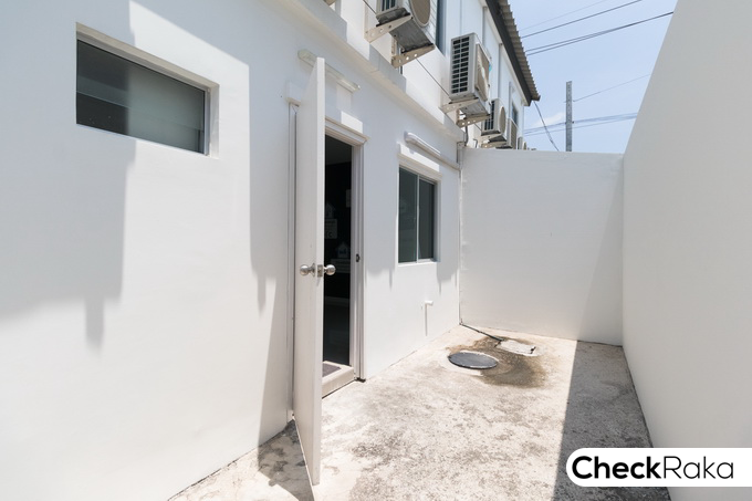 ประตูด้านหลังเป็นไฟเบอร์ซีเมนต์ และมีหน้าต่างบานเลื่อนให้ 1 บาน Smoke Detector ตรวจจับควันไฟและความร้อน