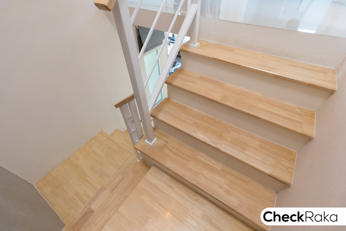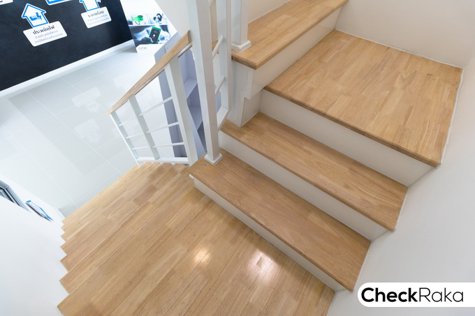 กลับเข้ามาชมด้านในตัวบ้านกันต่อ เป็นบันได Precast สำเร็จรูป แข็งแรงทนทานเทียบเท่าบ้านเดี่ยว