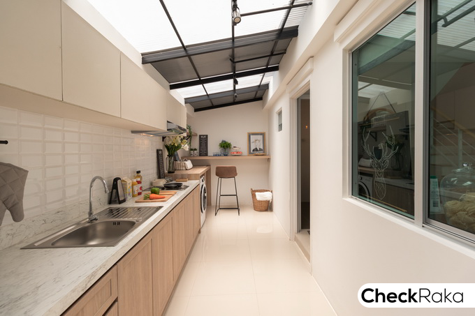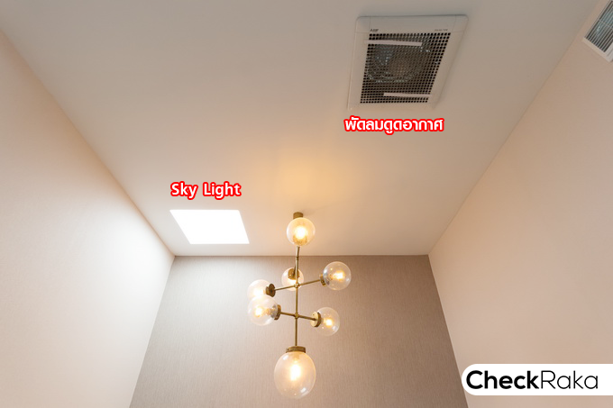 มีพัดลมดูดอากาศ และ Sky Light ที่ฝ้าเพดาน ช่วยรับแสงธรรมชาติเข้าสู่ตัวบ้าน