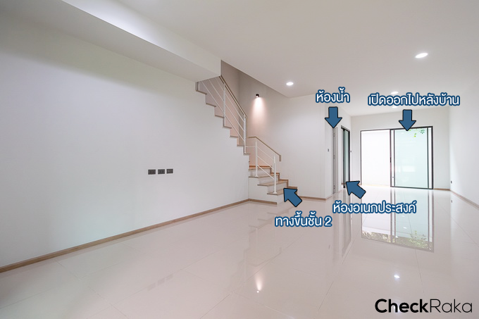 สำหรับพื้นที่ด้านหลังนี้จะมีความกว้างตั้งแต่ 2 เมตรขึ้นไป สามารถต่อเติมครัวได้ตามใจชอบเลย