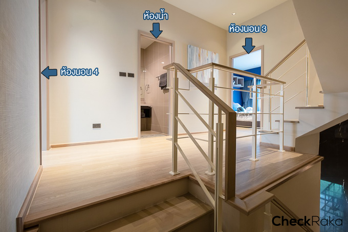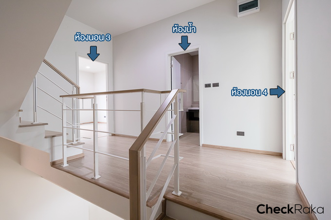 ขึ้นมาที่ชั้น 3 จะมีโถงขนาดเล็กตรงบันได จะวางตู้โชว์ หรือชั้นวางของก็ได้ ชั้น 3 จะมีฟังก์ชัน 2 ห้องนอน 2 ห้องน้ำ
