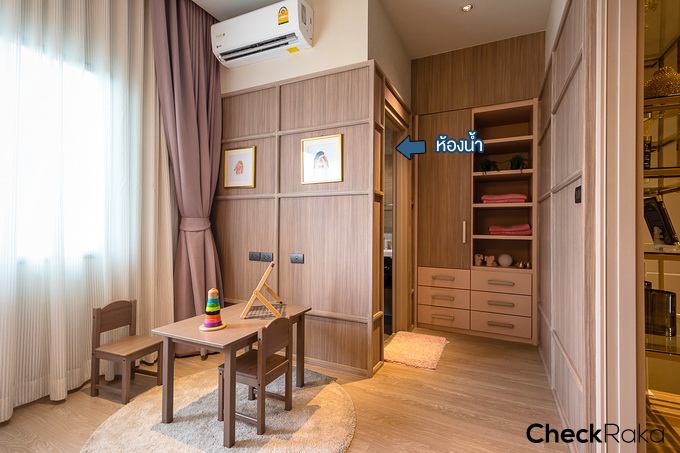 ภายในห้องสามารถจัดวางตู้เสื้อผ้า เตียงนอนขนาดใหญ่ ชั้นวางของ และโต๊ะเครื่องแป้งได้สบายๆ และยังมีห้องน้ำในตัวอีกด้วย