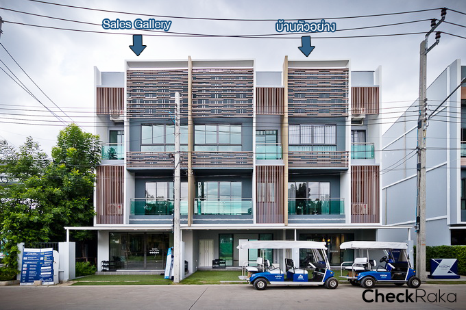 ผ่านซุ้มประตูเข้ามา ฝั่งซ้ายมือจะเป็นที่ตั้ง Sales Gallery และบ้านตัวอย่าง อยู่ติดกันเลย