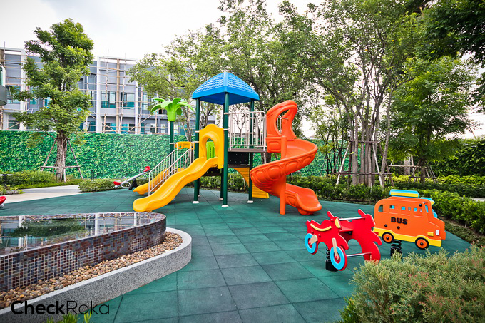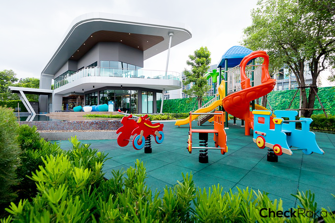 โซนสนามเด็กเล่นจะปูพื้นสำหรับลดแรงกระแทกมาให้ ถือว่าใส่ใจมากทีเดียว