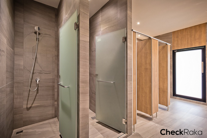 บ้านเปล่าจะก่อธรณีกั้นแยกส่วนเปียก/แห้งให้ ติดตั้งฝักบัวอาบน้ำ และติดตั้งพัดลมดูดอากาศ