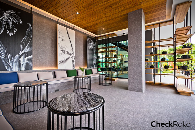 เข้ามาที่โถงชั้น 1 ส่วนแรกถูกจัดเป็นส่วนพักผ่อนรับแขก ความสูงจากพื้นถึงเพดาน 2.65 เมตร