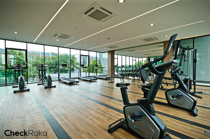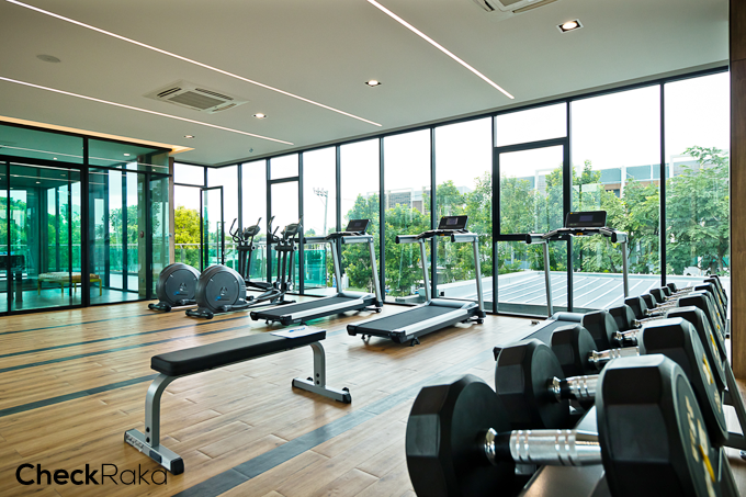 ขึ้นมาที่ชั้น 2 จะเห็นห้องฟิตเนสขนาดใหญ่พร้อมเครื่องเล่นตามมาตรฐานโรงยิม