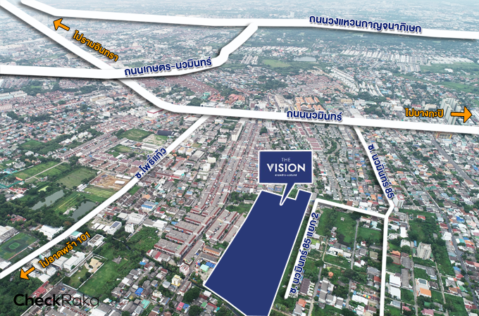 ตำแหน่งโครงการเดอะ วิชั่น ลาดพร้าว - นวมินทร์ จากมุมสูง