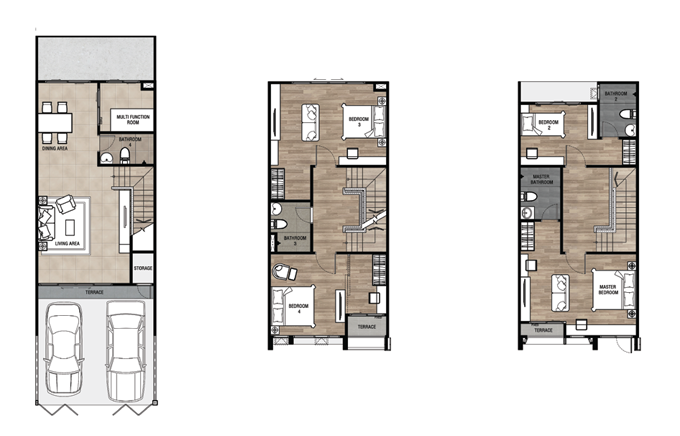 2. Vision Live - ทาวน์โฮม 3 ชั้น พื้นที่ใช้สอย 220 ตร.ม. หน้ากว้าง 5.5 เมตร 4 ห้องนอน 4 ห้องน้ำ 1 ห้องอเนกประสงค์ 1 ห้องรับแขก 2 ที่จอดรถ