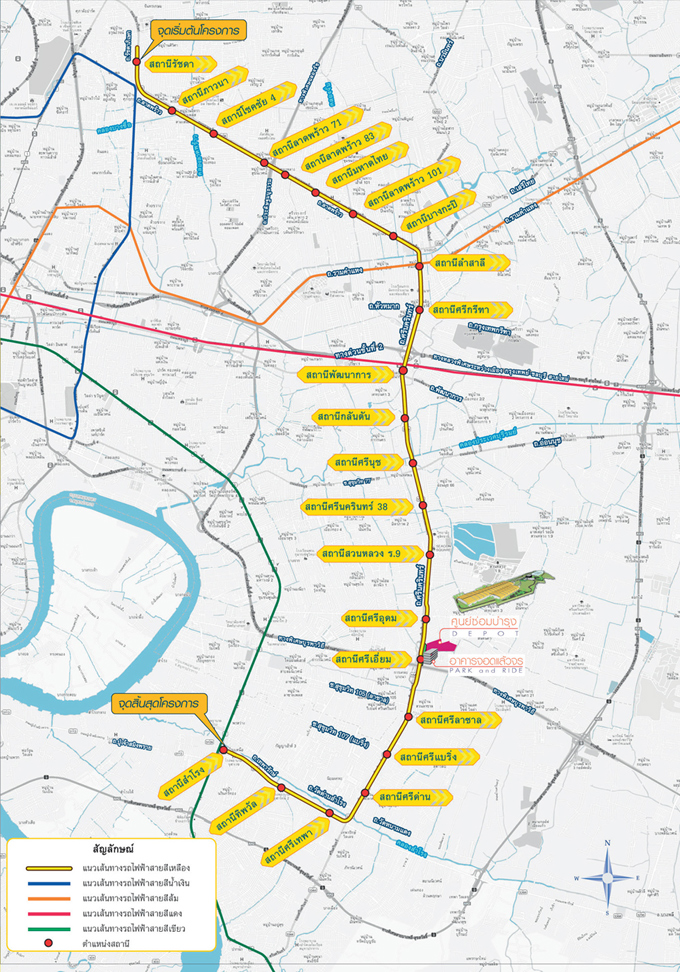 แผนผังรถไฟฟ้าสายสีชมพู ช่วงแคราย-มีนบุรี