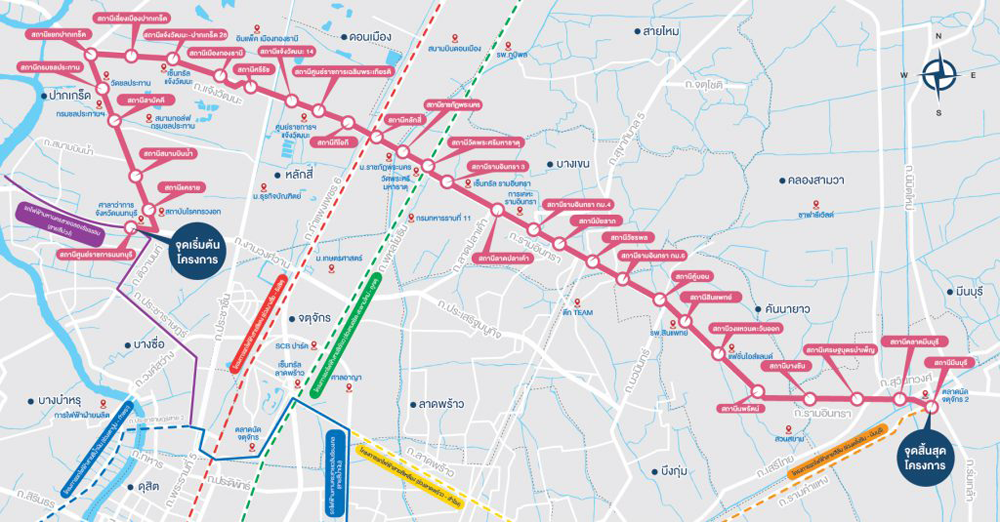 แผนผังรถไฟฟ้าสายสีชมพู ช่วงแคราย-มีนบุรี