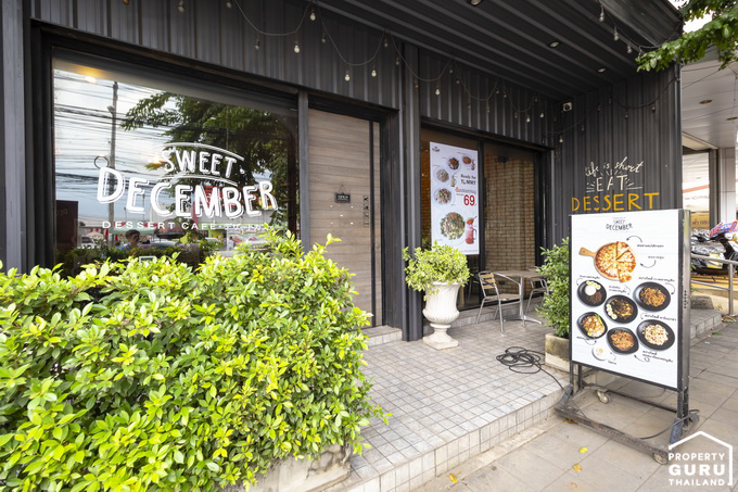 "SWEET DECEMBER" อยู่ติดถนนคู้บอน ตรงข้ามกับบิ๊กซี มาร์เก็ตคู้บอน จอดรถที่ด้านหลังร้านได้