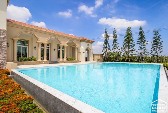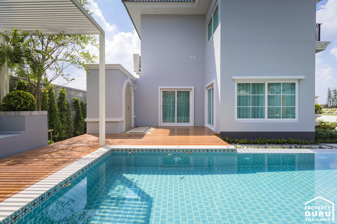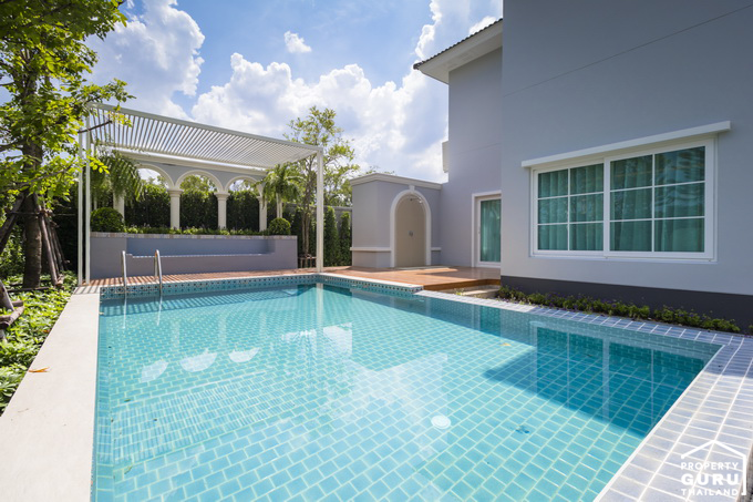ถ้าบ้านหลังไหนมีพื้นที่เยอะๆ แบบนี้ก็สามารถทำสระว่ายแบบบ้านตัวอย่างได้เลย ก็จะได้พื้นที่พักผ่อนสำหรับครอบครัวด้วย