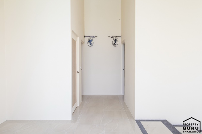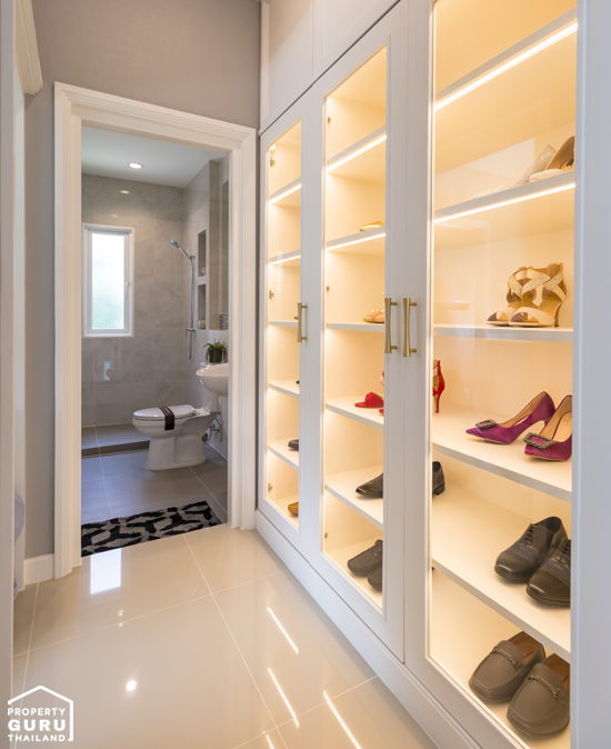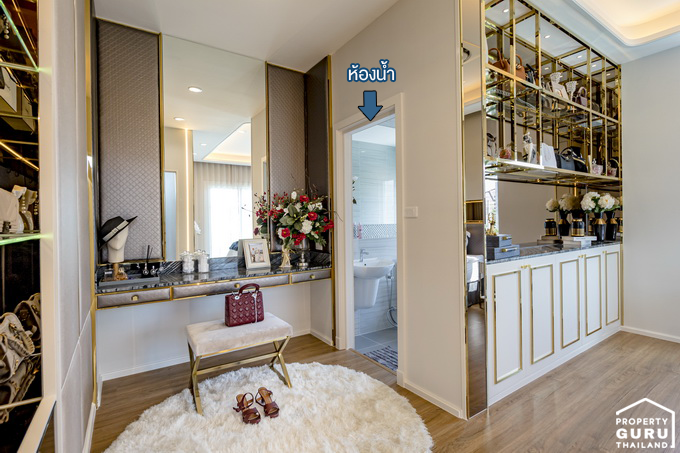 มุมนี้ Built-in เฟอร์นิเจอร์มาให้ แต่บ้านที่ขายจริงเป็นพื้นที่โล่งๆ เลย มีประตูทางเข้าห้องน้ำจากส่วนนี้
