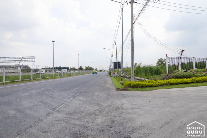 หน้าถนนเลียบวงแหวนกาญจนาภิเษก ซึ่งเป็นถนนสองเลนสวนกัน