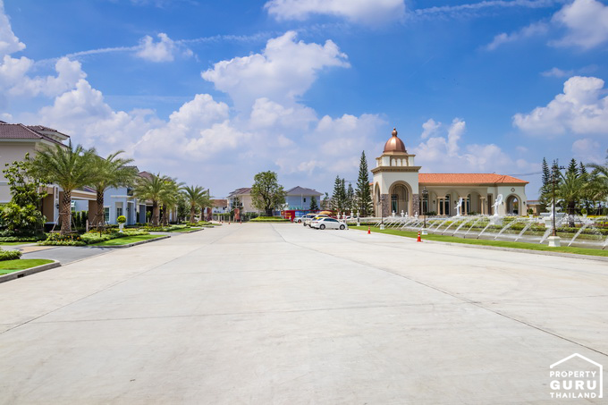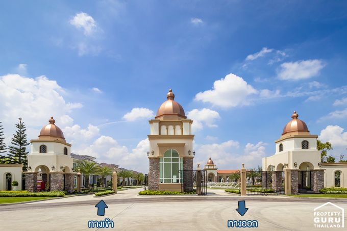 ทางเข้าโครงการ แบบบ้านภายในโครงการ และคลับเฮ้าส์
