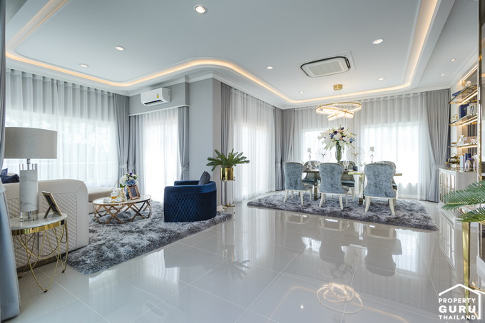 1. GRANADA - บ้านเดี่ยว 2 ชั้น มีพื้นที่ใช้สอย 240 ตร.ม. ขนาด 4 ห้องนอน 4 ห้องน้ำ 2 Living Room, Family Area, Multi-Purpose Room, Dining Room, Kitchen, Laundry, ห้องพระ ที่จอดรถ 3 คัน