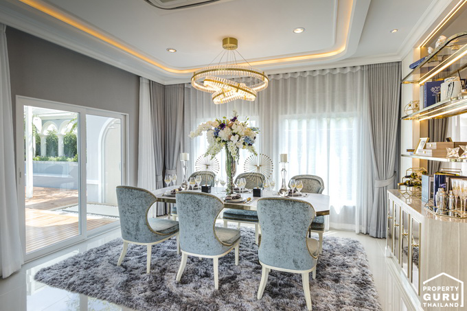 พื้นที่รับประทานอาหาร สามารถวางโต๊ะอาหารขนาด 6 ที่ได้พอดี มีหน้าต่างบานเลื่อนขนาดใหญ่ไว้รับแสงธรรมชาติ
