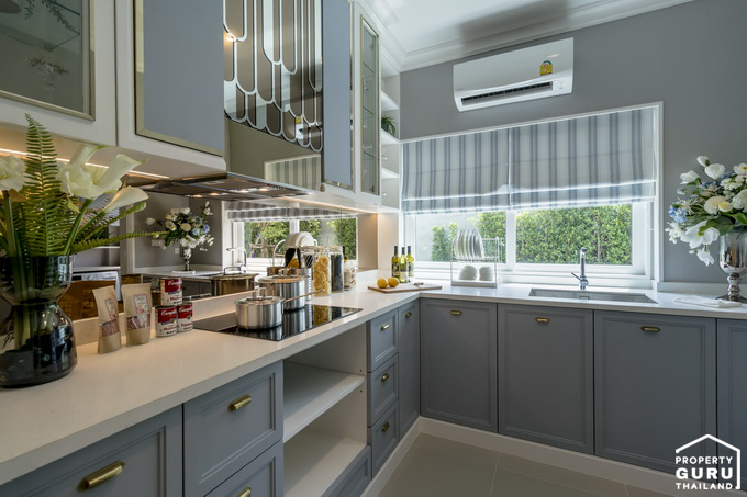 ติดกับห้องน้ำ คือ ทางเข้าห้องครัว ซึ่งครัวที่นี่เป็นครัวแยก ทางโครงการมีประตูปิดมาให้ช่วยลดปัญหาเรื่องกลิ่นควันเข้าตัวบ้าน มีหน้าต่างบานเลื่อน 1 บาน ไว้เปิดระบายอากาศ