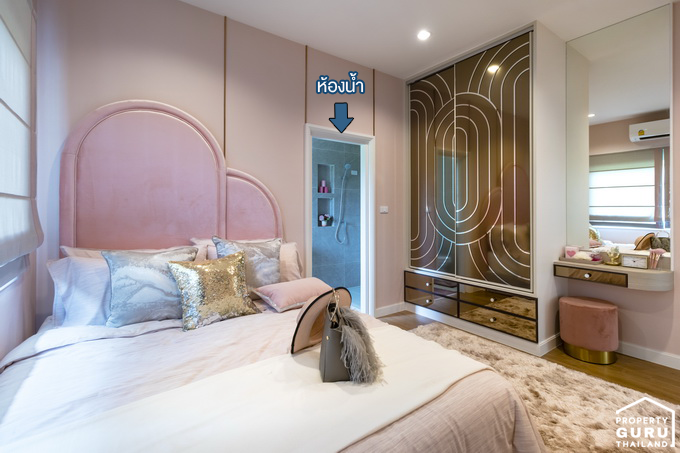 วางตู้เสื้อผ้า โต๊ะเครื่องแป้ง และยังมีห้องน้ำในตัวให้