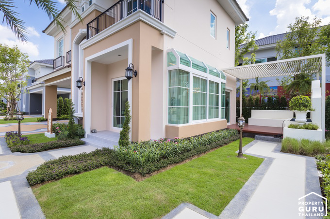 สำหรับบ้านที่นี่ขายแบบบ้านเปล่ามาตรฐาน ไม่รวมเฟอร์นิเจอร์ จัดสวนปูหญ้าไว้ให้
