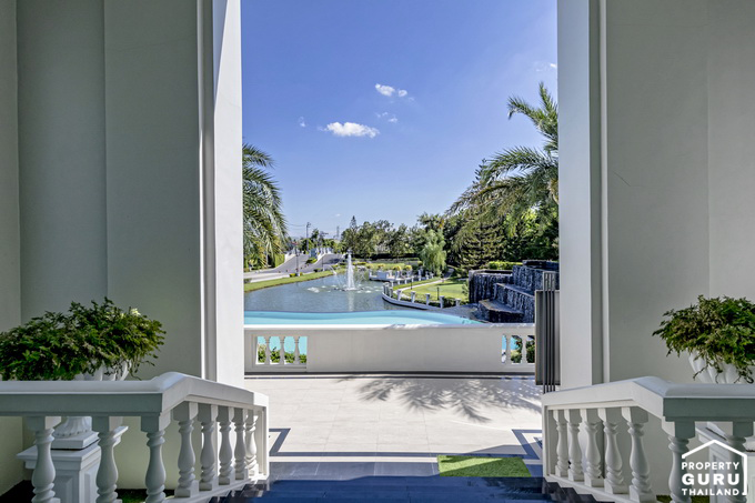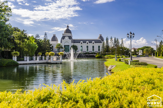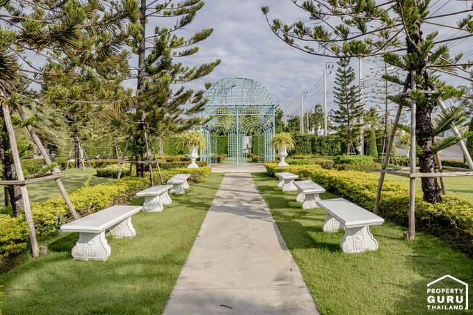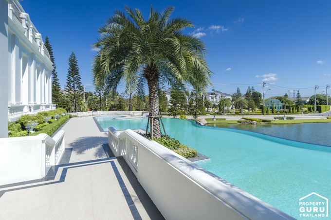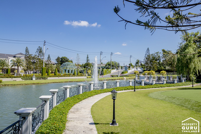 ด้านหน้าคลับเฮ้าส์จะมีทางเดินไว้สำหรับเดินชมสวนอยู่ริมทะเลสาบแบบนี้เลย