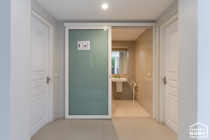 ฝั่งขวามือของเคาน์เตอร์ต้อนรับเป็นห้องน้ำ แยกชาย-หญิง