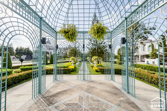โดมเหล็กดัด ตกแต่งออกมาเข้ากับสวนสีเขียวพอดี
