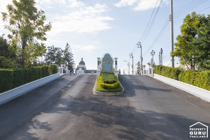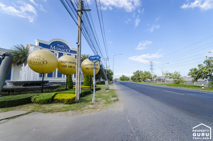 มีป้ายชื่อโครงการ Two Grande Monaco ขนาดใหญ่ตั้งอยู่ฝั่งขวามือ