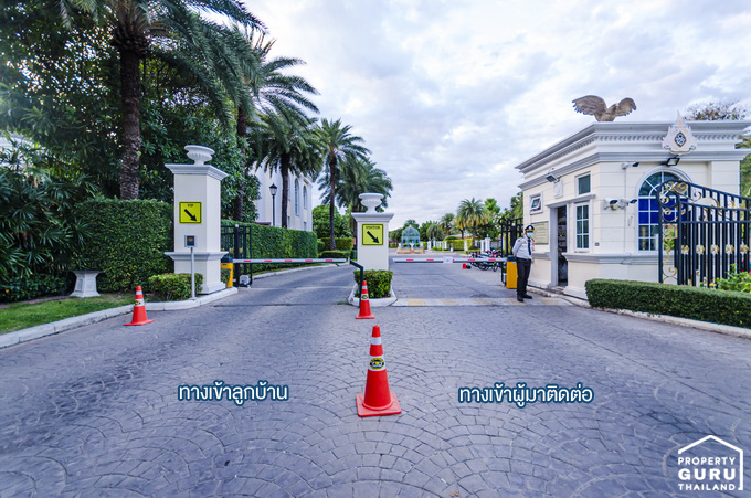 ประตูทางเข้า-ออก แยกระหว่างลูกบ้านกับคนภายนอกที่มาติดต่อ ซึ่งทำให้คนที่อาศัยภายในโครงการมีความสะดวกยิ่งขึ้นเพราะไม่ต้องเสียเวลารอคนภายนอกที่กำลังแลกบัตร มีป้อม รปภ. คั่นอยู่ตรงกลาง